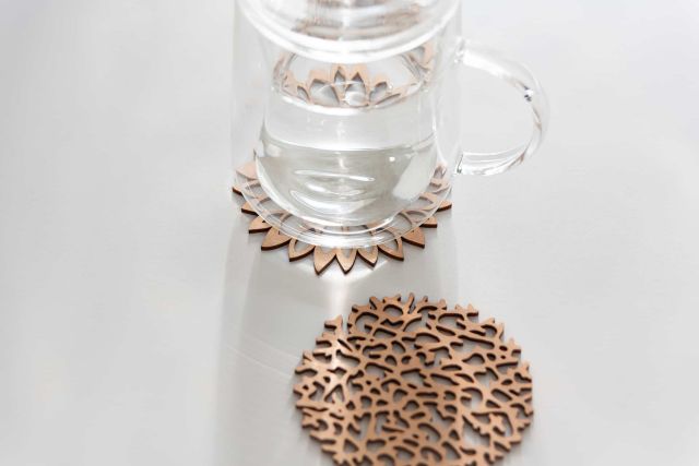 自然の中で見つけられる独特な曲線や模様をカットし、木の素朴な温もりと組み合わせました。その結果、コースター自体が美しいアクセントになると同時に、カップやグラスを置く場所に自然な雰囲気を加えてくれます。